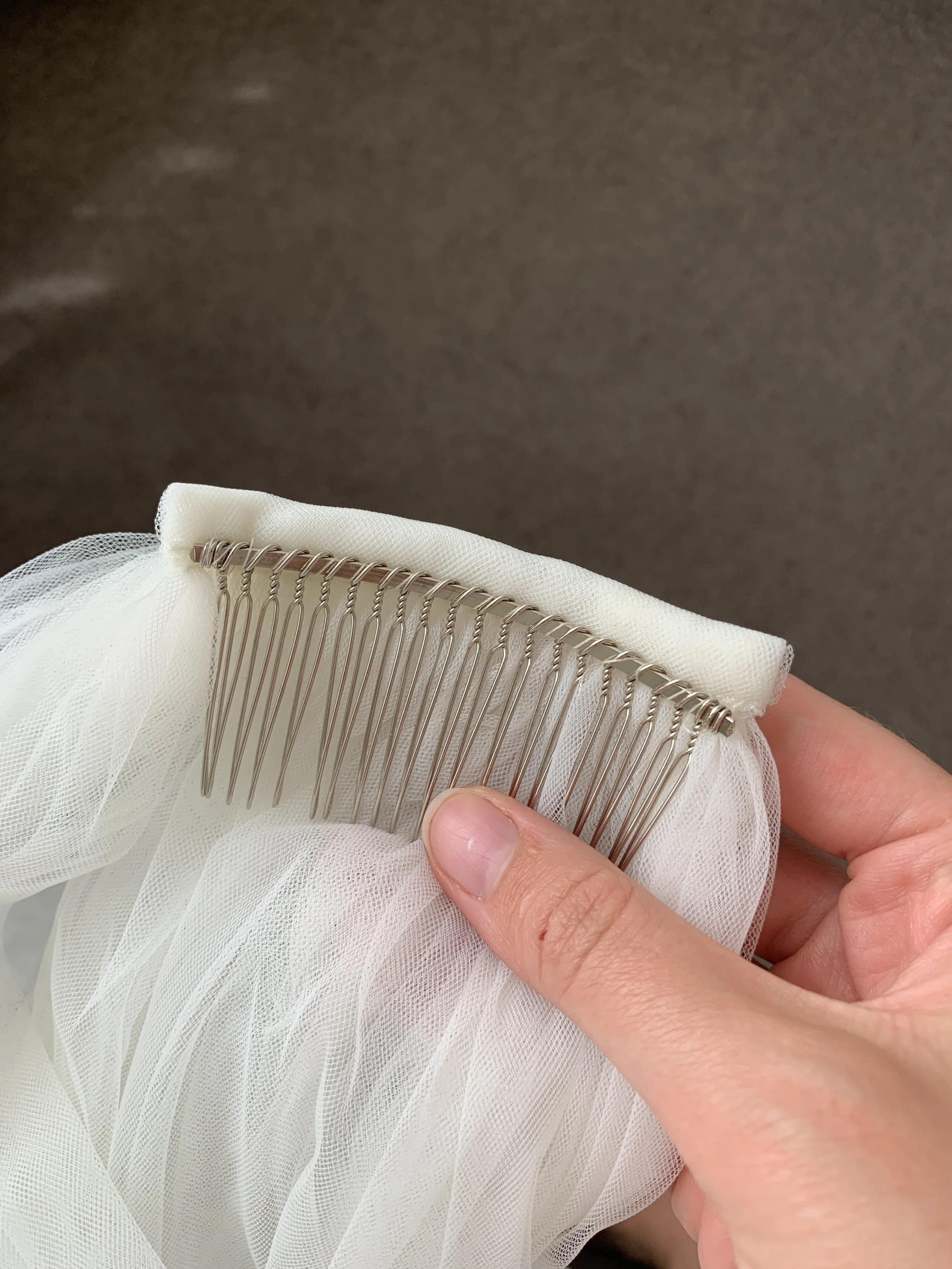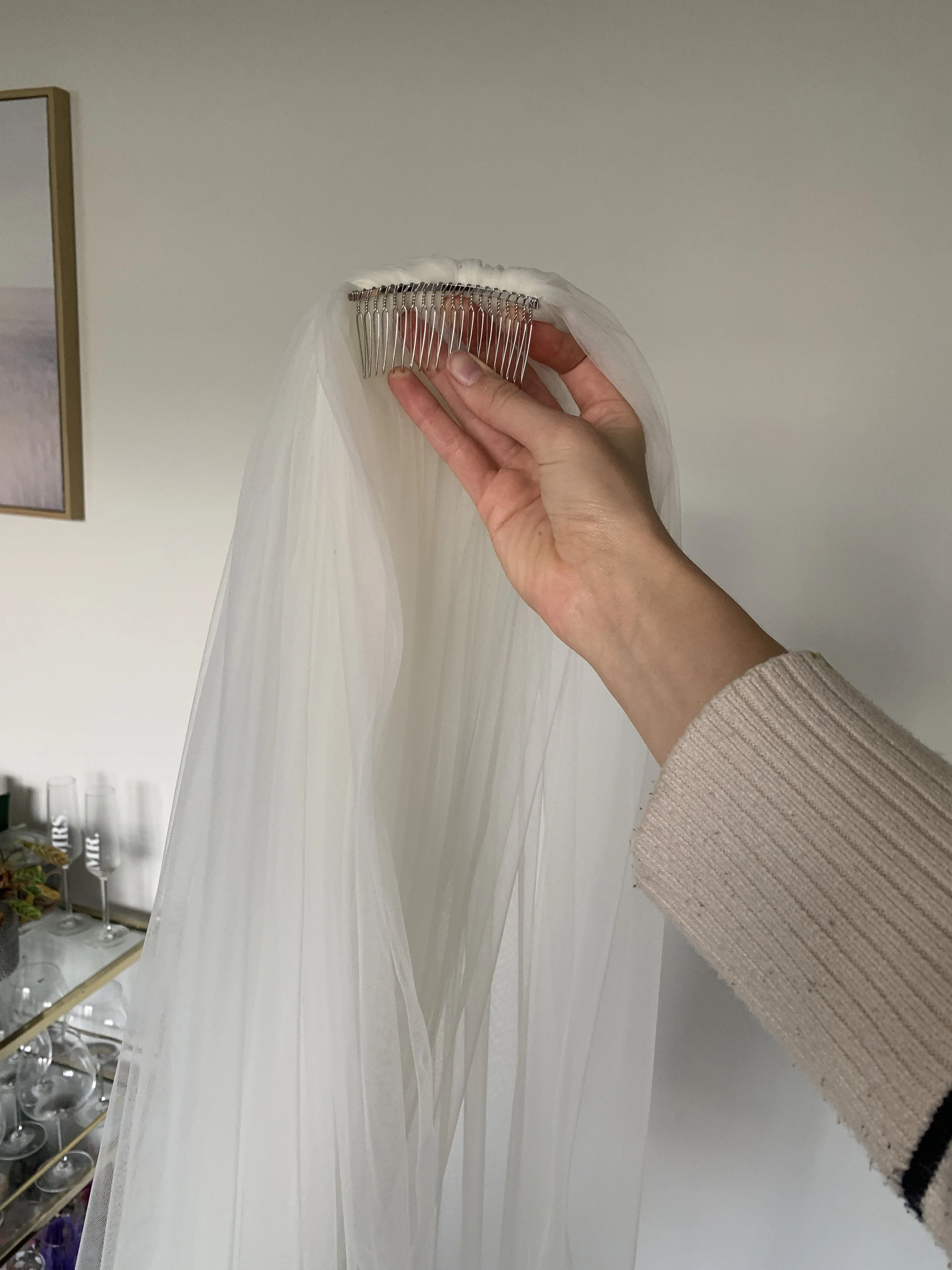 Choose from our handmade tulle veils, each finished with a clean tulle-wrapped metal comb. Pick your preferred length and whether you’d like an optional blusher.Choose Your Design Option