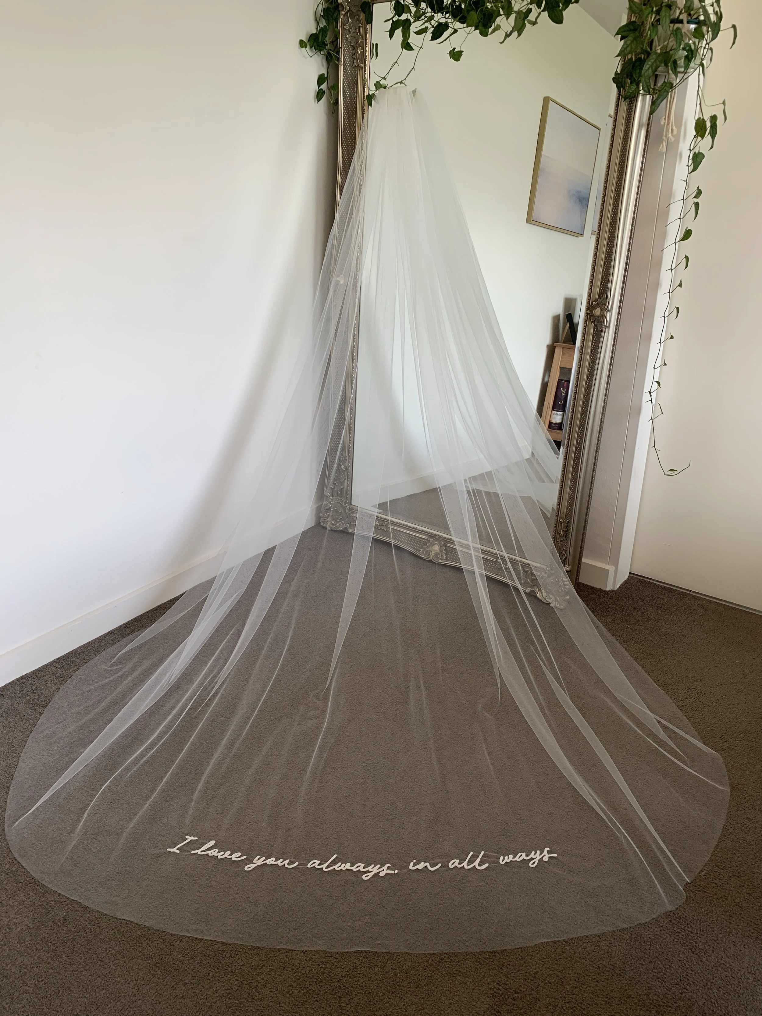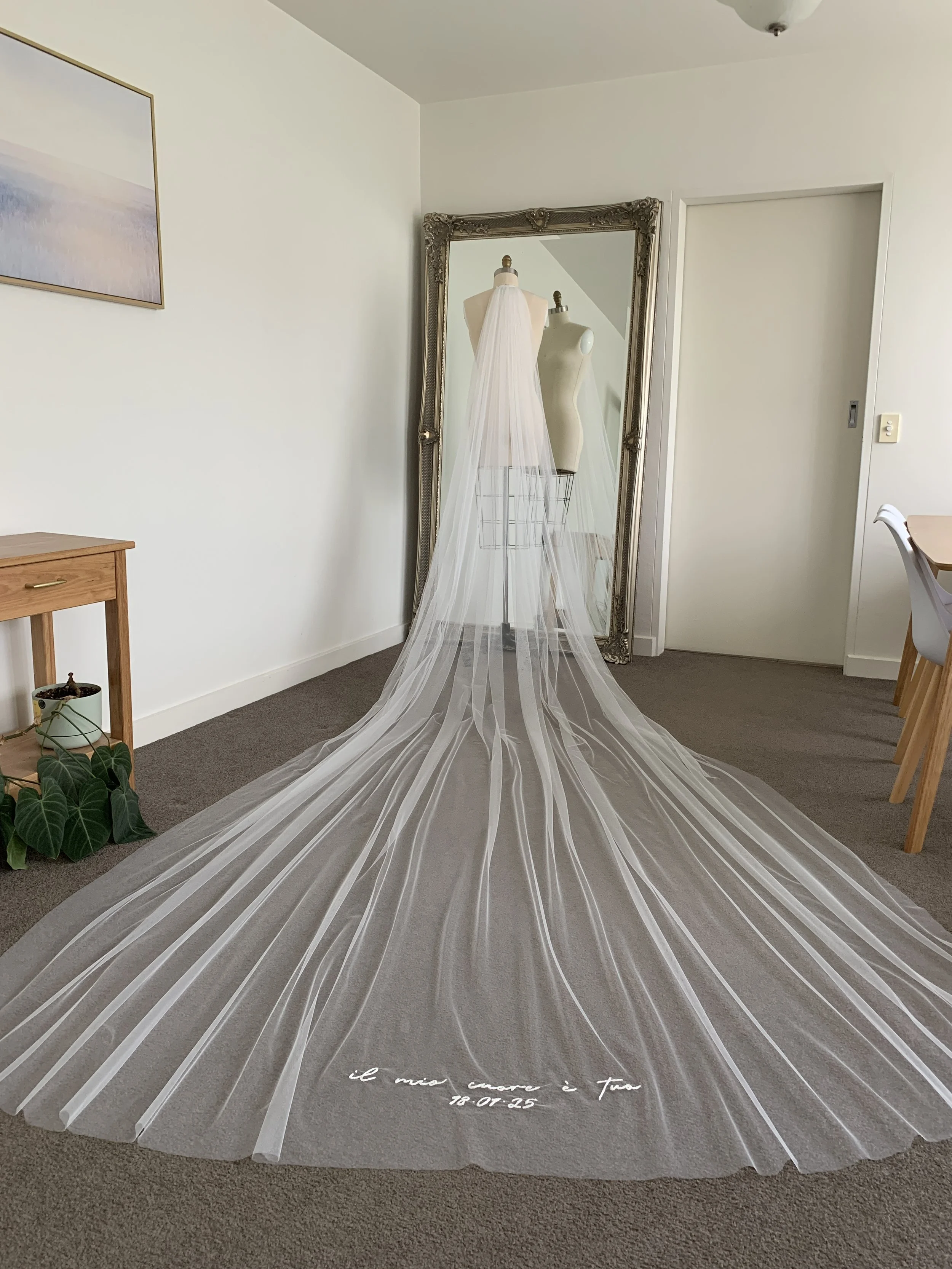 Your completed veil will be carefully packaged and shipped to you. Lead time is approximately 4+ weeks. If you require your item sooner, please get in touch to confirm availability.