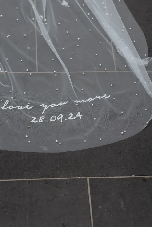 Add a personal touch to your wedding day look with customised bridal veil embellishments. From delicate lace embroidery to sparkling beads and sequins, there are endless ways to make your veil unique. Explore our custom veil embroidery options and learn how personalisation can transform your veil into a treasured keepsake that reflects your love story.